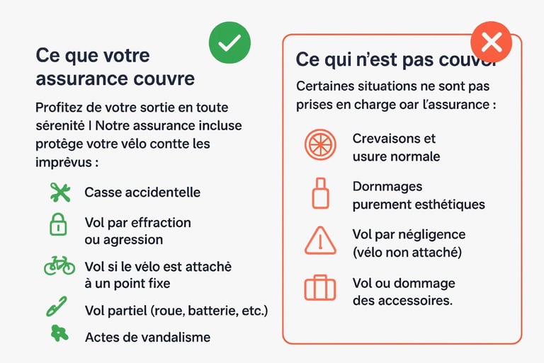 Chaque location comprend une assurance complète, pensée pour vous protéger face aux imprévus. Casse accidentelle, vol ou vandalisme : vous partez rouler en toute confiance, sans stress ni mauvaise surprise.